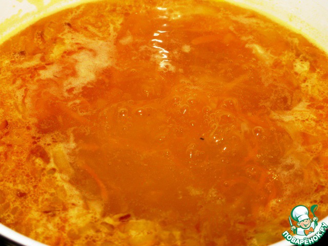 Добавить в бульон зажарку. Варить 10-15 минут.