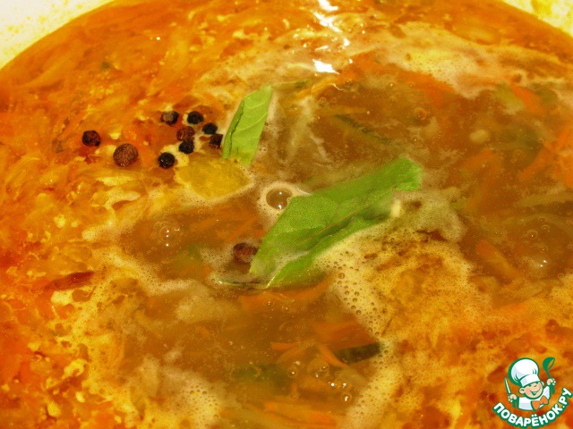 За 20 минут до готовности добавить лавровый лист и перец горошком.