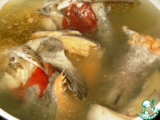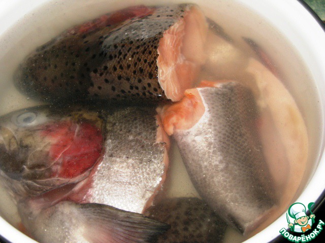 Рыбу почистить, удалить жабры. Я брала 2 головы и 2 хвоста сёмги.