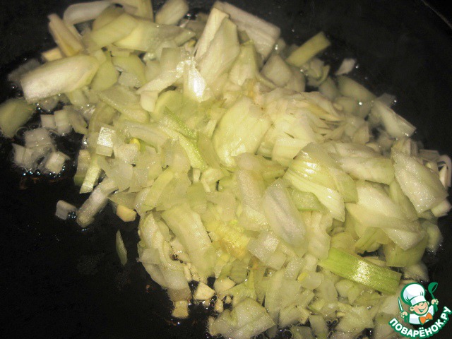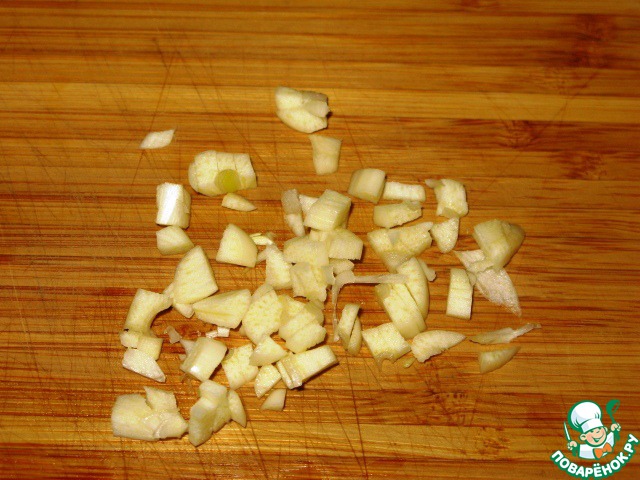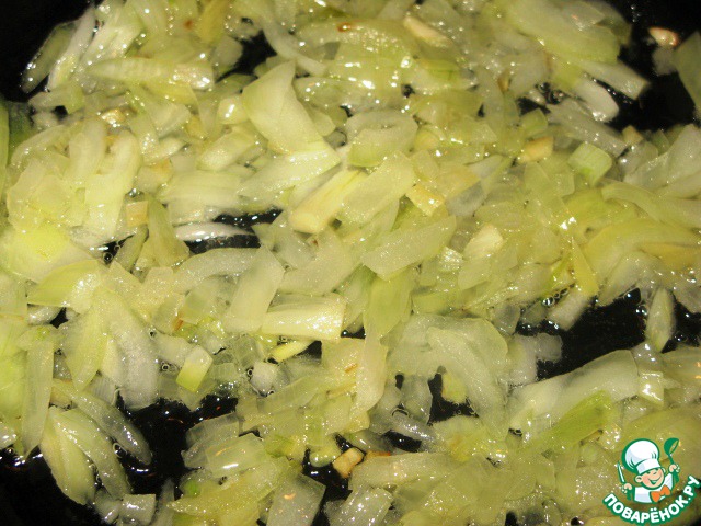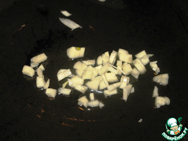 Разогреть на сковороде масло, добавить чеснок. Жарить 3 минуты.