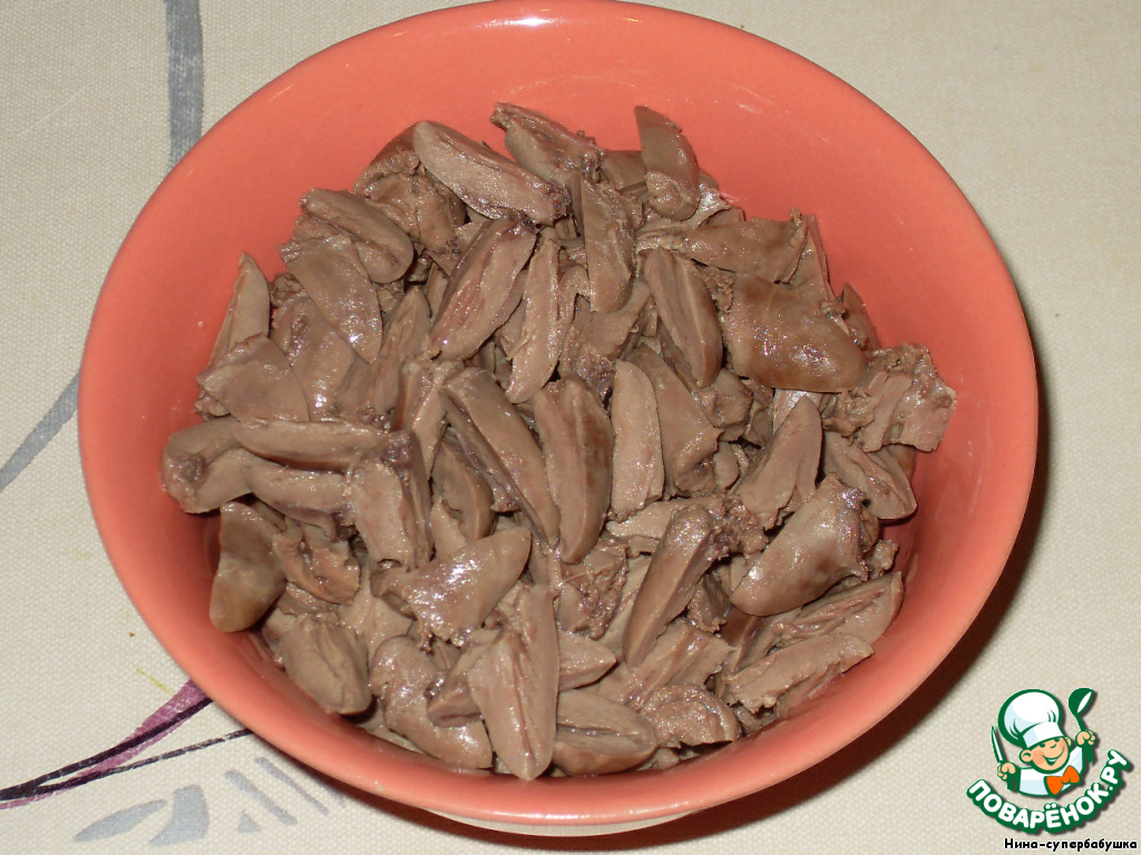 Затем, хорошо промыть в нескольких водах, опустить в кипящий бульон и сварить до готовности. Бульон снова процедить. Сердечки нарезать вдоль на дольки и пока отложить, прикрыв их, чтобы не обветрились.