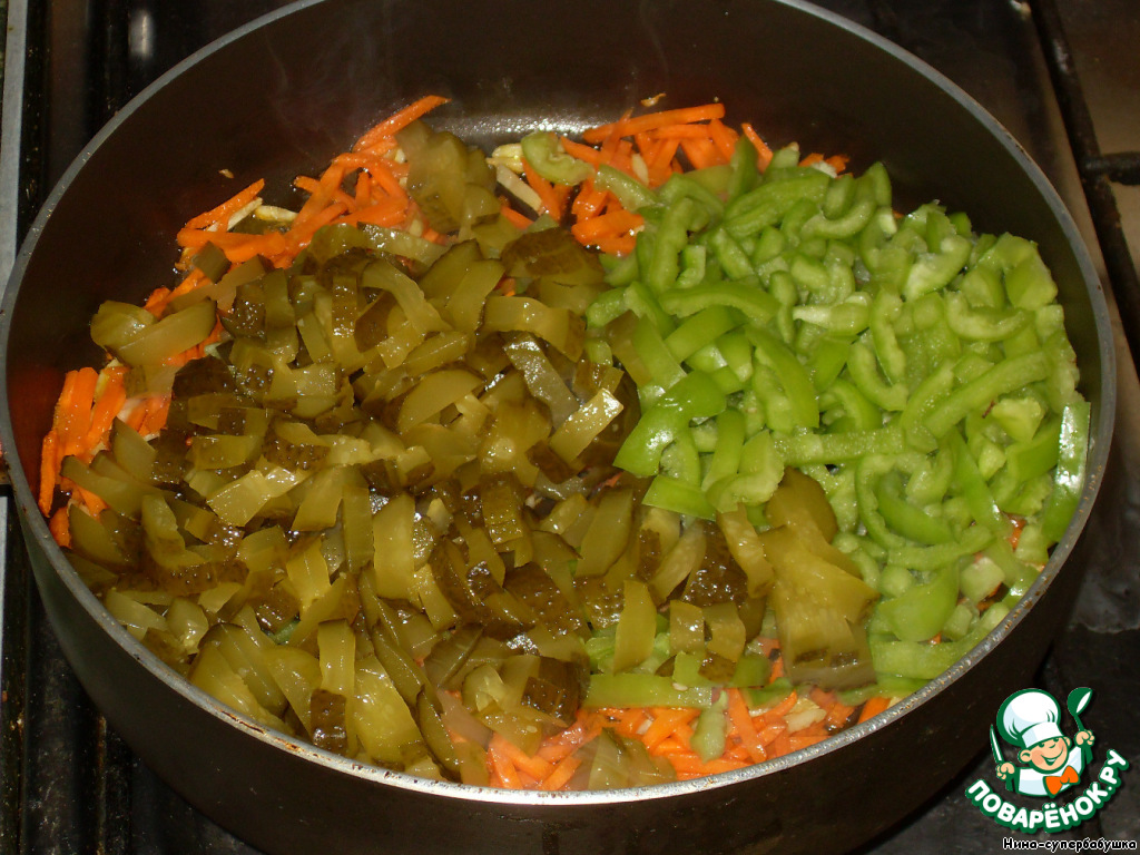 Я не нашла в продаже черешкового сельдерея, поэтому заменила его на зеленый болгарский перец.