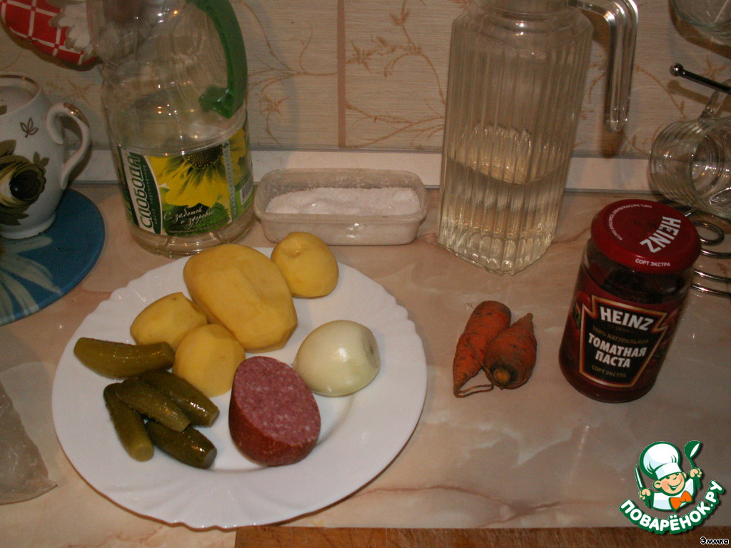 | Всегда, когда в моей голове возникает вопрос: "Что приготовить?", я вспоминаю этот супчик. Наверное, он отличается от оригинальной солянки, но вкусен и меня всегда выручает. |