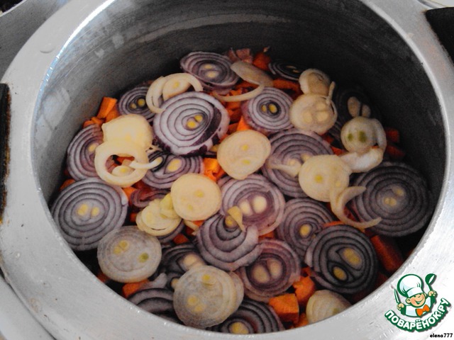 Муж готовил в скороварке, если нет скороварки, то сердце и лёгкое надо сначала отварить отдельно, затем добавить почки, отваренные в 3 водах, и овощи.