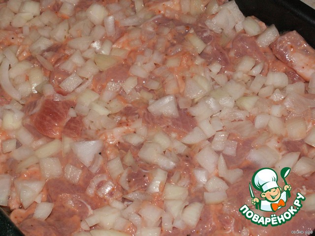 Смешать эту смесь с мясом и оставить мариноваться на несколько часов (лучше на ночь).