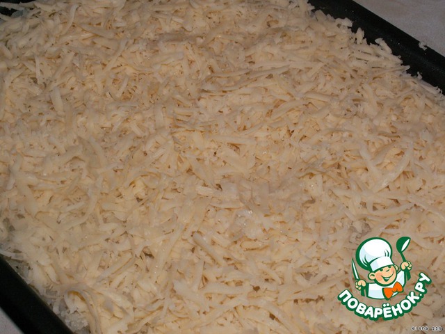 Форму для запекания смазать растительным маслом, выложить слоями: