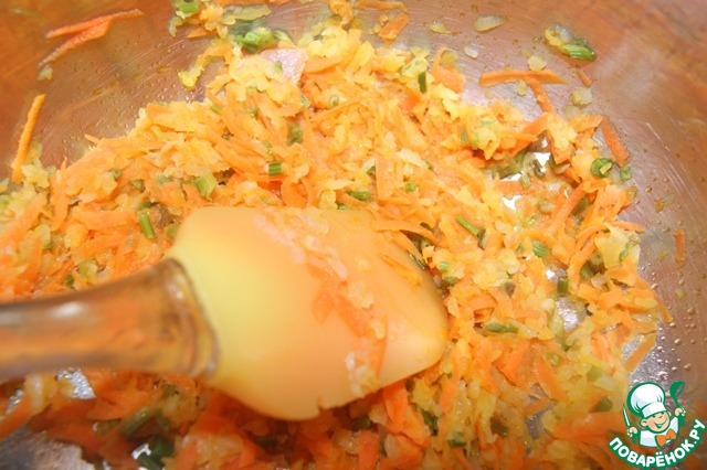 В отдельном сотейнике в 2 ст. л. масла потушить лук, морковь и сельдерей
