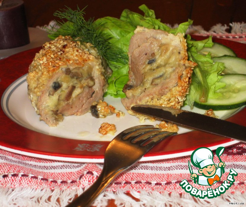 Свиные рулетики с начинкой из пюре и грибов "Гармоничный симбиоз"