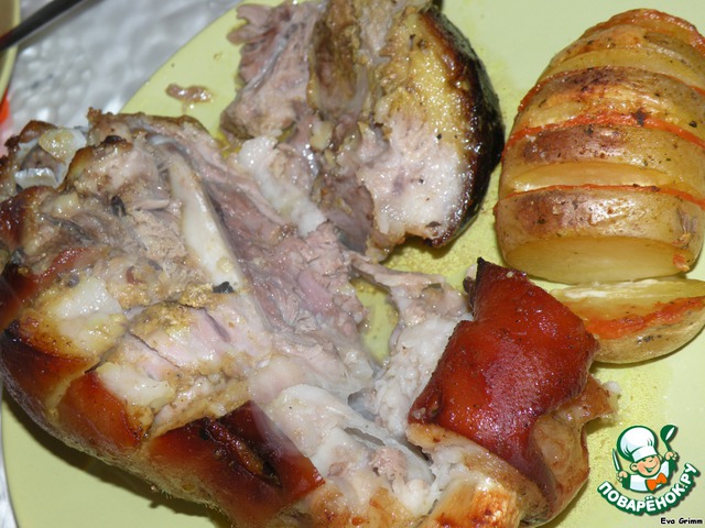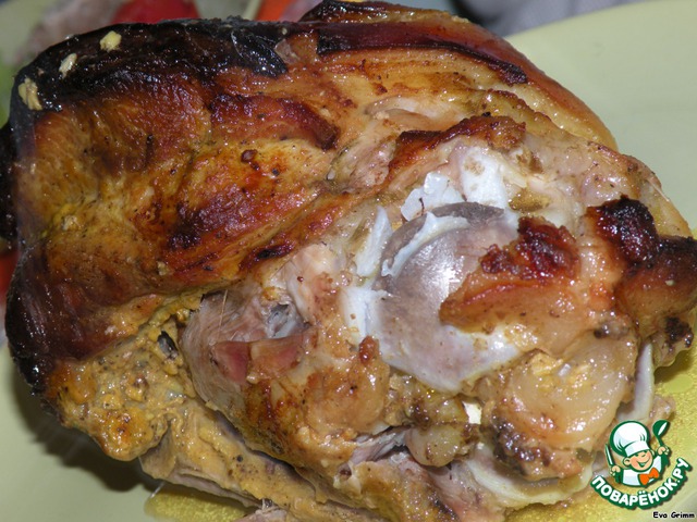 | В 99 % рульку нужно мариновать на ночь и варить до готовности, прежде чем запекать... А у меня ну НЕТУТИ такой кастрюли, вот вывернулась, как смогла, причем результат - мягчайшее мяско, которое просто само отваливается от косточки... Это так несложно приготовить ))) |