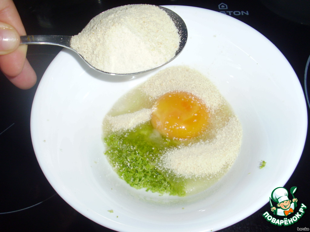 Смешать панировочные сухари, яйцо и цедру лимона (у меня был лайм),