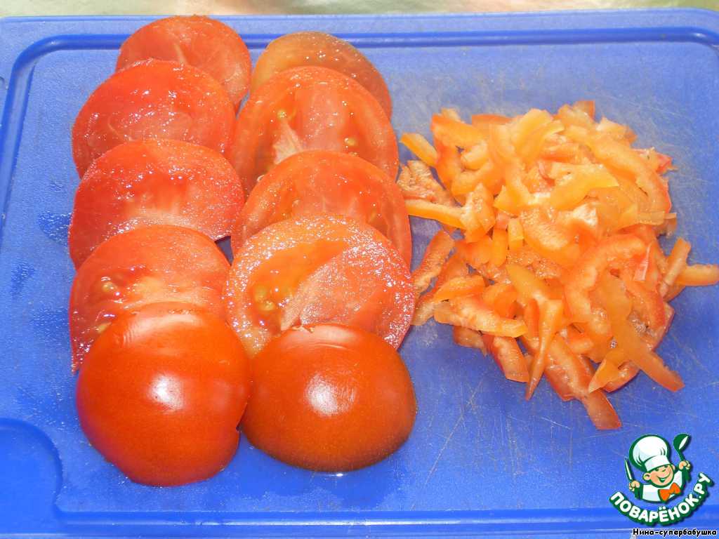 Сверху посыпать оставленным сыром, влить немного воды и запечь в духовке 40-50 минут при 200*С.