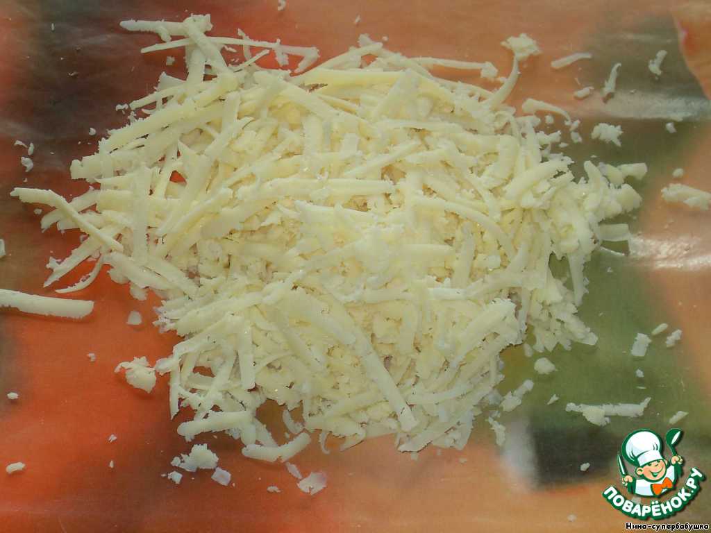 Смазать майонезом, смешанным с тертым сыром (немного сыра оставить для посыпки).