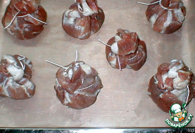 Свинину нарезать как на отбивные, желательно, чтобы кусочки были круглыми,