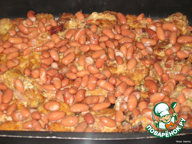Свинина с фасолью под грибным соусом