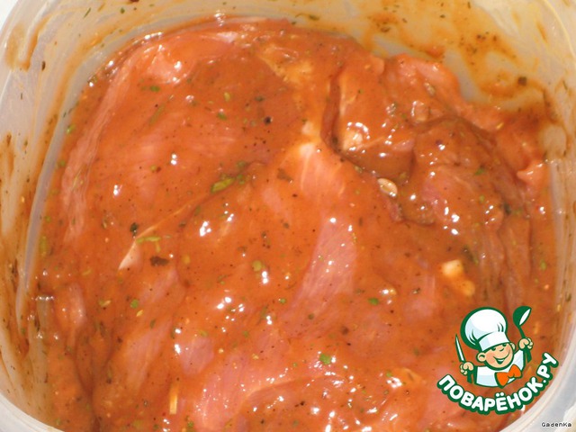 и замариновать в этом соусе свинину на ночь или на 4-5 часов минимум.