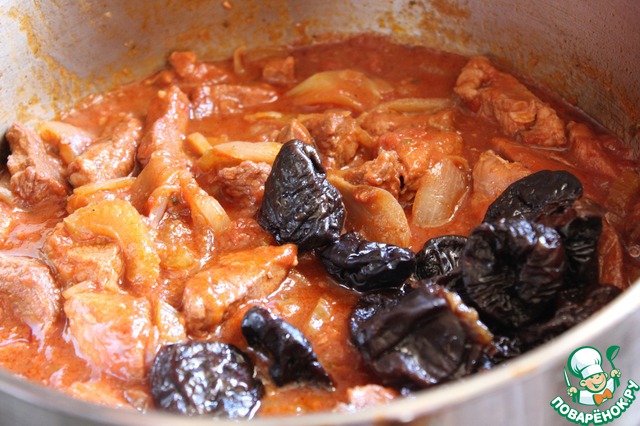 | Свинина тушеная с черносливом, луком и томатами. Просто тает во рту! |
