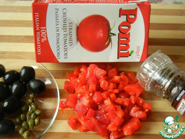 Через 5 минут после того как помидорная смесь закипит, добавляем орегано, каперсы, соль и смесь перцев (я брала смесь розового, белого и черного) по вкусу.