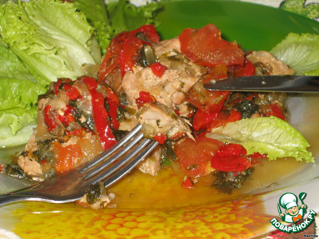 | Нежное сочное мясо, в обрамлении овощей.. приправленное огромным количеством свежих ароматных трав... Быстро... просто и оооочень вкусно Рецепт этого блюда был размещeн на сайте в 2009 году пользователем Nanusha под названием Мяско "Полезное" и иллюстрирован мной в рамках акции "Раскраски". |