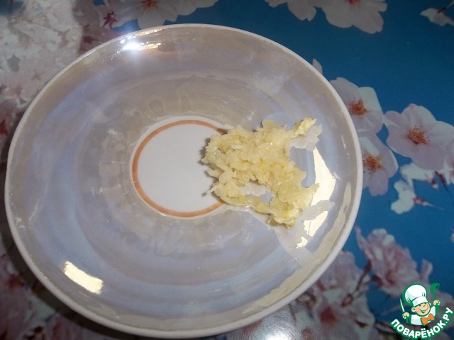 Смешиваем яйцо, майонез, чеснок и молотый черный перец.