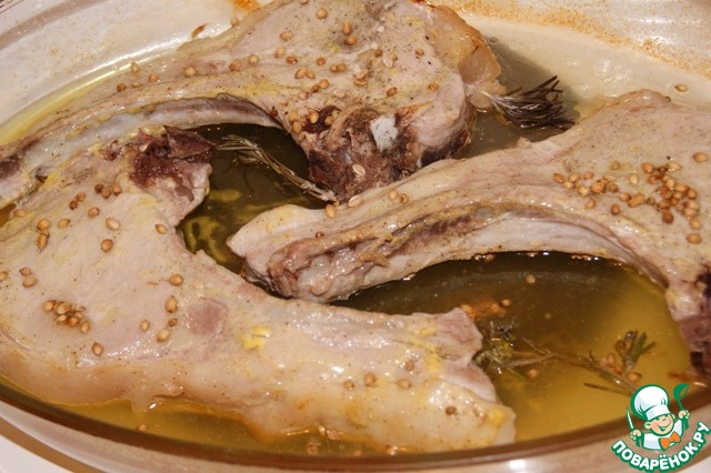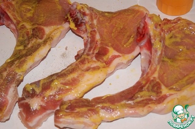 Посолить и поперчить, смазать горчицей и оставить на 30-40 минут в прохладном месте.