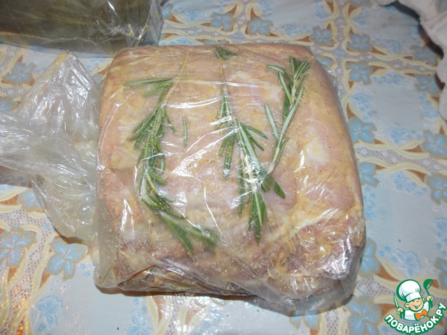 Затем укладываем мясо в пакет и кладем в холодильник на 14-15 часов.