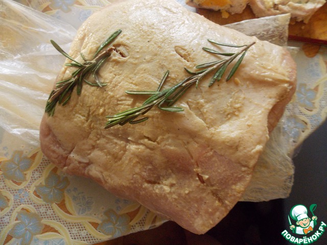 Затем на мясо кладем свежий розмарин )) И муж кинул пару перьев зеленого лука)))