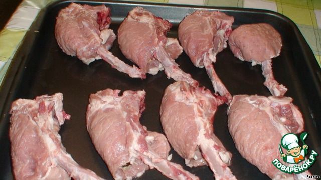 Каждый кусок мяса моем , обрезаем лишний жир и зачищаем косточку.