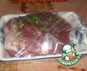 Уложить в рукав для запекания, вложить внутрь веточку розмарина.