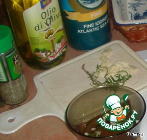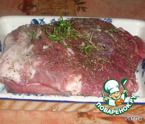 Еще одну дольку порезать мелко-мелко, добавить мелко порезанных иголочек розмарина, смешать с оливковым маслом, натереть этой смесью мясо, хорошенько посолить со всех сторон, поперчить.