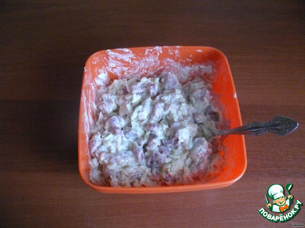 Все это хорошенько перемешиваем, даем немного настояться (если надо приготовить побыстрее, то я ставлю буквально на 10 минут в холодильник, если же время есть, но на 1,5-2 часа)