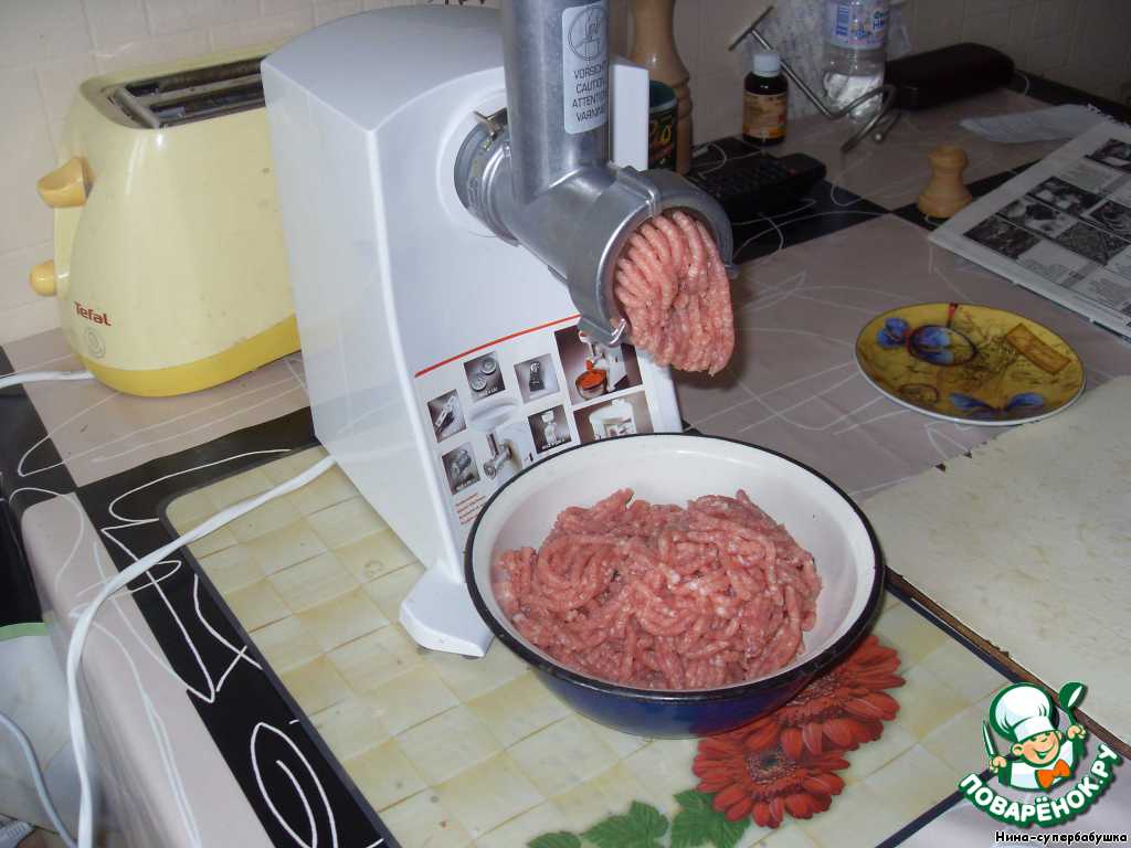 Свинину нарезать кусочками и пропустить через мясорубку.