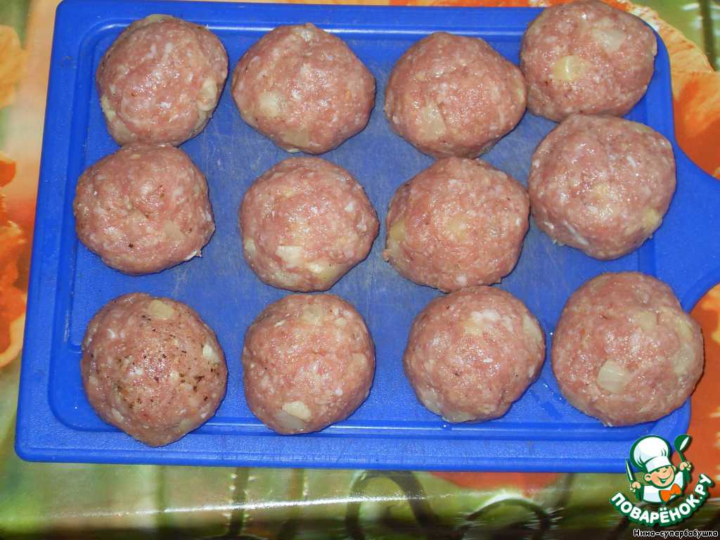 Слегка обжарить тефтели в растительном масле со всех сторон.