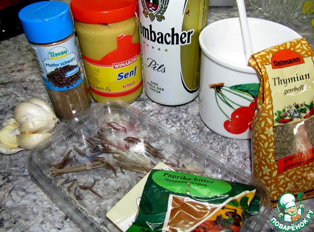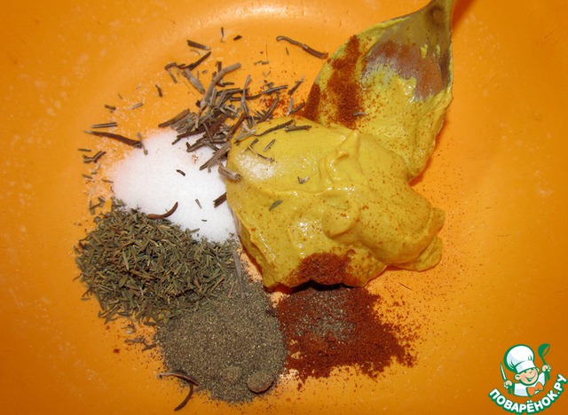 Все специи по вкусу, я брала по 1 ч. л., чеснок измельчить