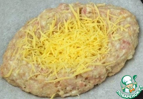 Слегка запеченные шницели засыпаем сыром, натертым на терке. Сыр кладем только в углубления.