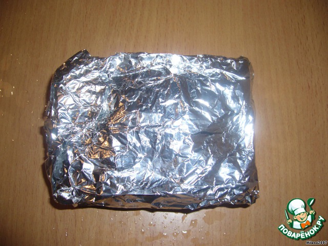 Завернуть пирог в фольгу.