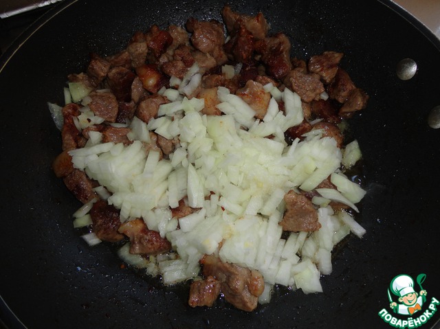 Добавляем лук. Солим. Лук должен стать мягким.