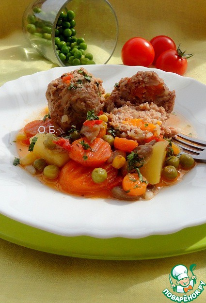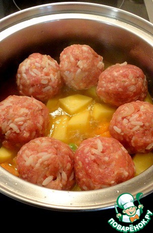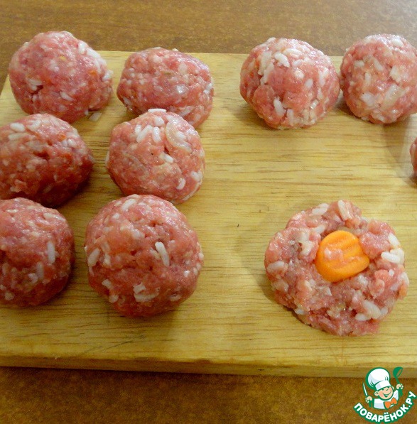 Сформировать фрикадельки, в каждую положить по кусочку моркови (я брала из зажарки).