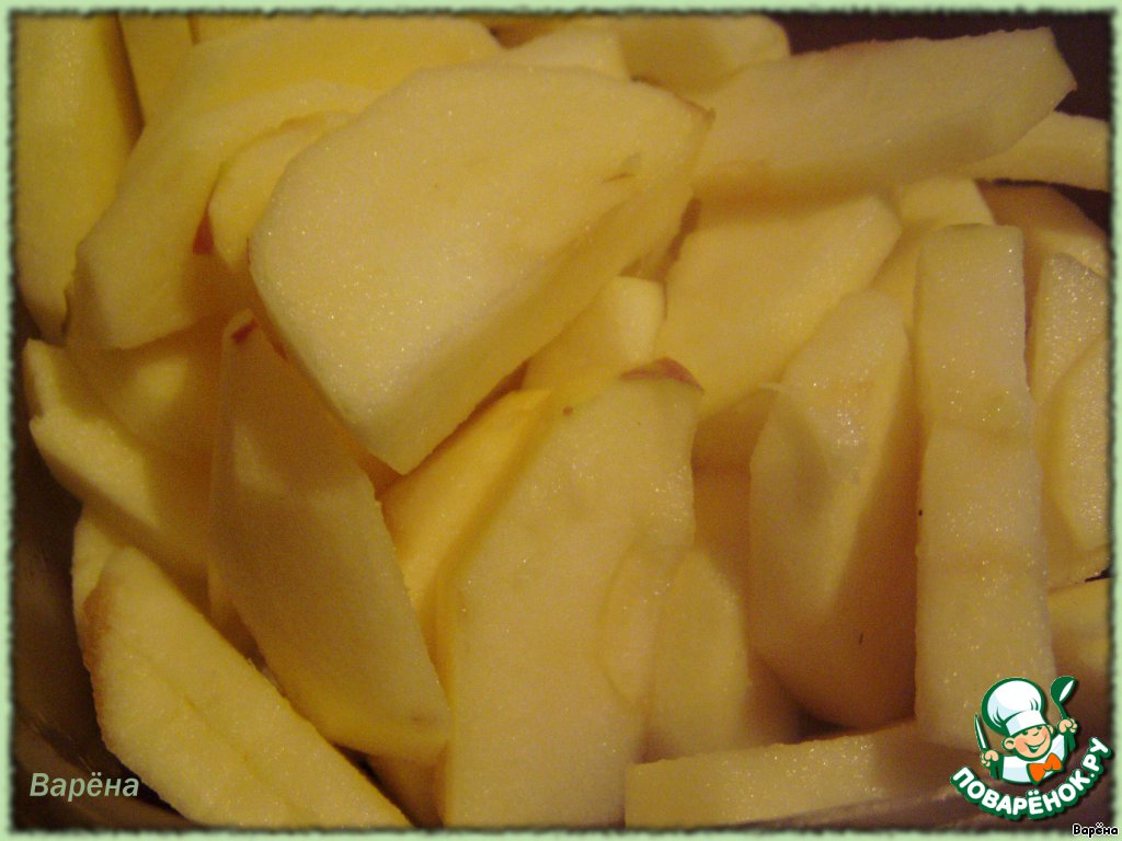 Яблоки очистите и нарежьте небольшими пластинками, сбрызните соком половины лимона.