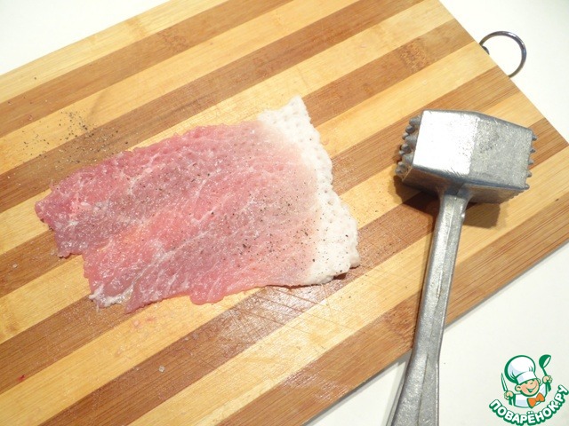 Отбиваю каждый ломтик, солю и перчу по вкусу.