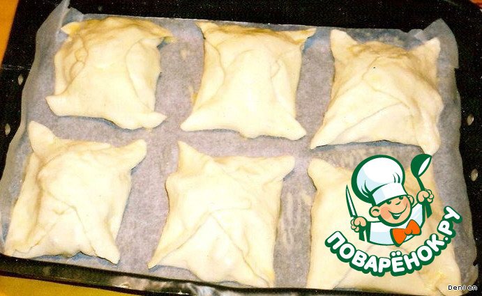 Смазываем конвертики яйцом и отправляем в духовку. Запекаем до готовности теста.