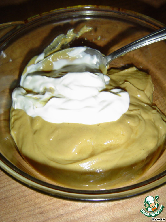 Готовим смесь для обмазывания мяса: для этого смешиваем майонез, горчицу и соль,