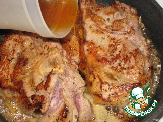 Обжарить мясо с двух сторон до золотистой корочки на большом огне.