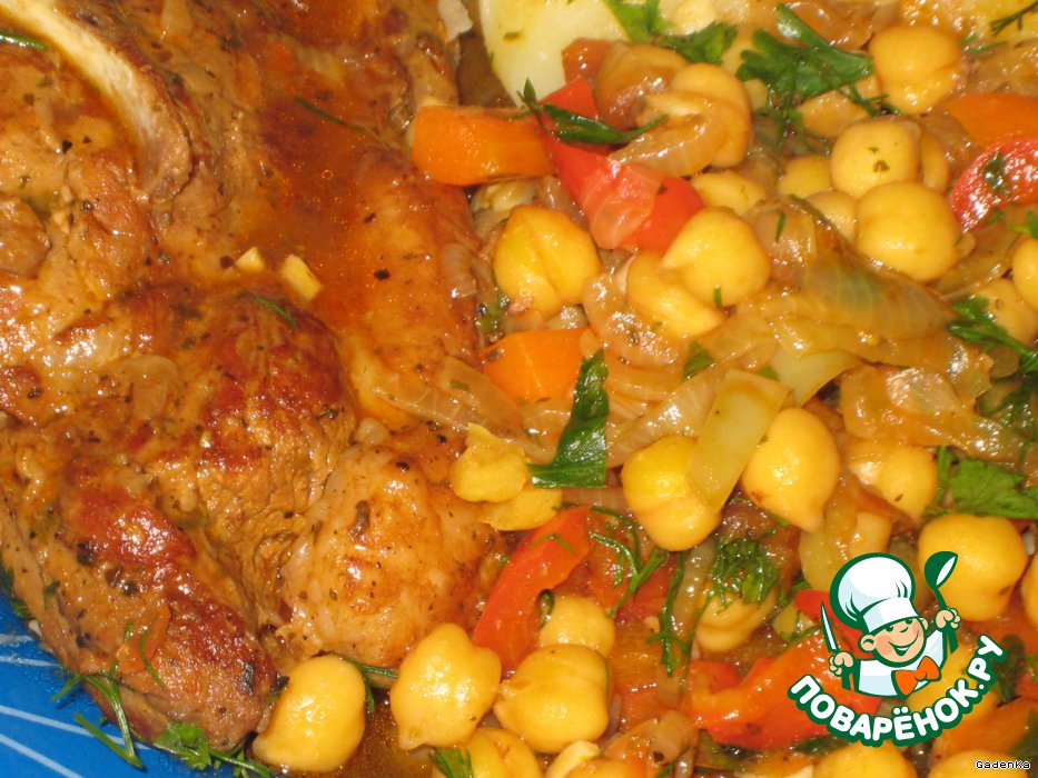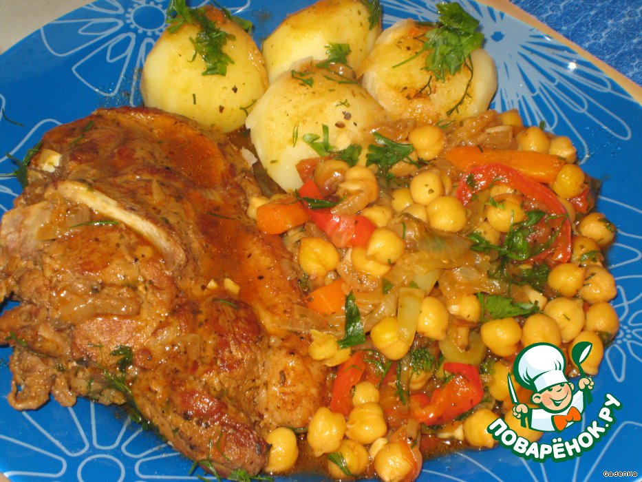 | Несложное приготовление отличного ужина из свинины на косточке, томленого в темном пиве и гороха нут, который по пищевой ценности превосходит другие бобовые, не уступая во вкусовых качествах. Добавим для усложнения вкусовой гаммы немного лука, морковки и сладкого перца, в итоге получаем превосходное блюдо, которое подойдет и для праздничного стола. |