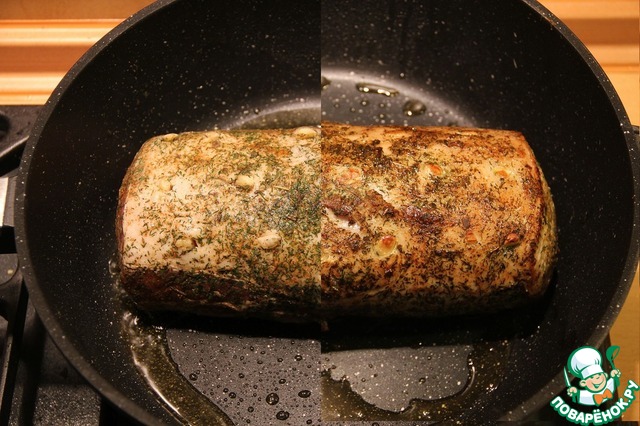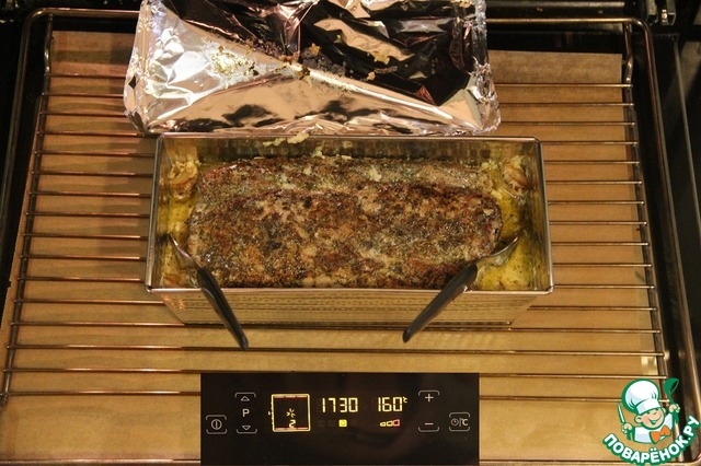 Вынимаем испечённую свинину, соус можно поместить обратно без фольги в форме в духовку на 10 мин. или выпарить на горячей сковороде около 1-2 мин., перемолоть блендером.