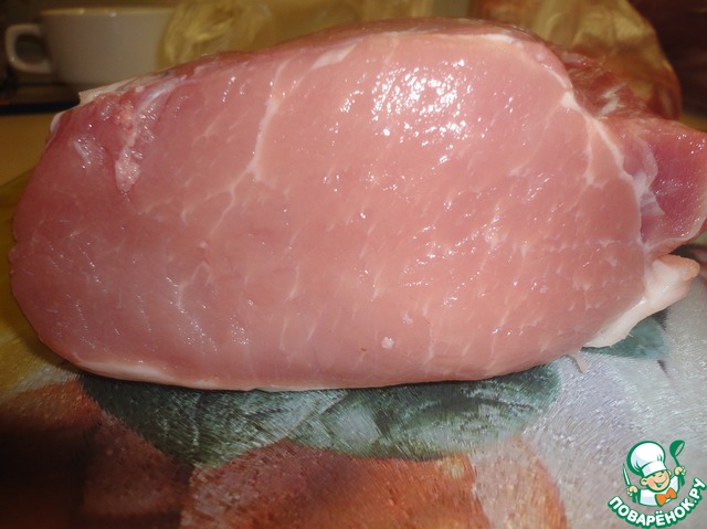 Вечером!!! Берём карбонат, самую середину (краешки обрезаем). Кусочки по 700г, стараться, чтобы были одинаковые. У меня 4 кусочка по 700г. Кто любит жирное мясо, можно готовить это блюдо из шеи.
