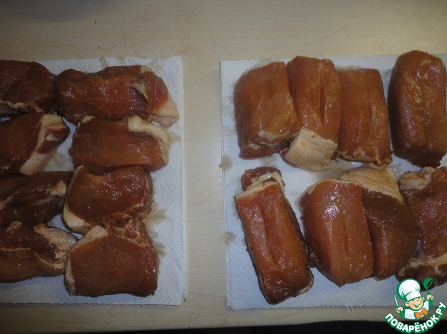 Утром достаём мясо. Обсушить на бумажном полотенце.