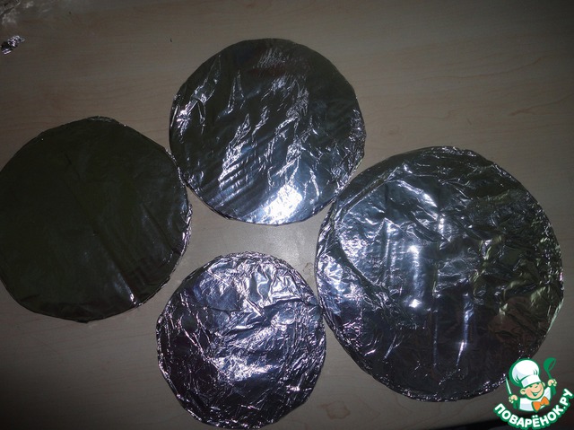 Готовим заготовки. Я обтянула фольгой большую форму.