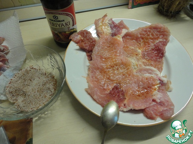 Мясо (у меня карбонат) порезать на кусочки не толще 2 см.