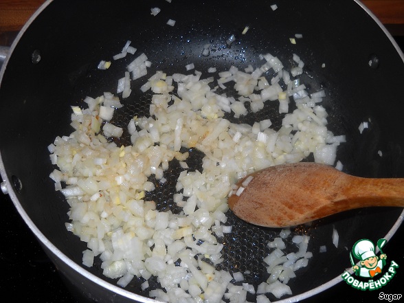 В сковороде, в которой тушилось мясо, обжариваем лук тоже до золотистого цвета.