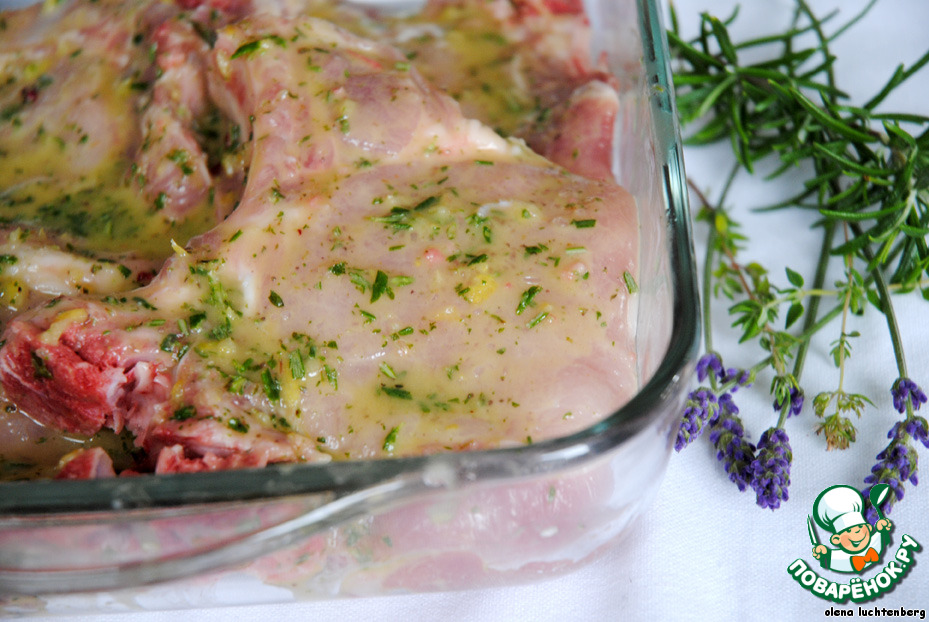 Для маринада измельчить в процессоре лаванду, розмарин, тимьян, цедру лимона вместе с маслом, соком лимона, медом и солью.